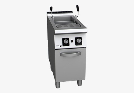 FAGOR elektromos üzemű tésztafőző. Alkalmazható továbbá zöldség, rizs vagy tojás főzésére is. Fedlap vastagság 2 mm. Rozsdamentes acél fűtőszálak. Vezérlőgombok vízbeszivárgás ellen védettek. IPX5 szintű vízvédelem. Űrtartalom 40 liter, GN1/1 méret. Két sebességű vízfeltöltés. Beépített csepegtető felület. Alacsony vízszint érzékelő biztonsági rendszer. Alaptartozéka 3 db 1/3 méretű tésztafőző kosár. További lehetséges kosár kombinációk: 1/1 1/2 - 1/3 – 1/4 - 1/6.